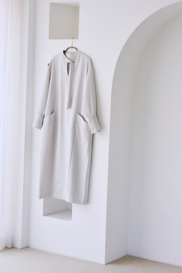 大きなポケットや、さりげなくあしらわれたサテン生地の切り返しにより、ワンピースにありがちなのっぺりとした印象も与えません。