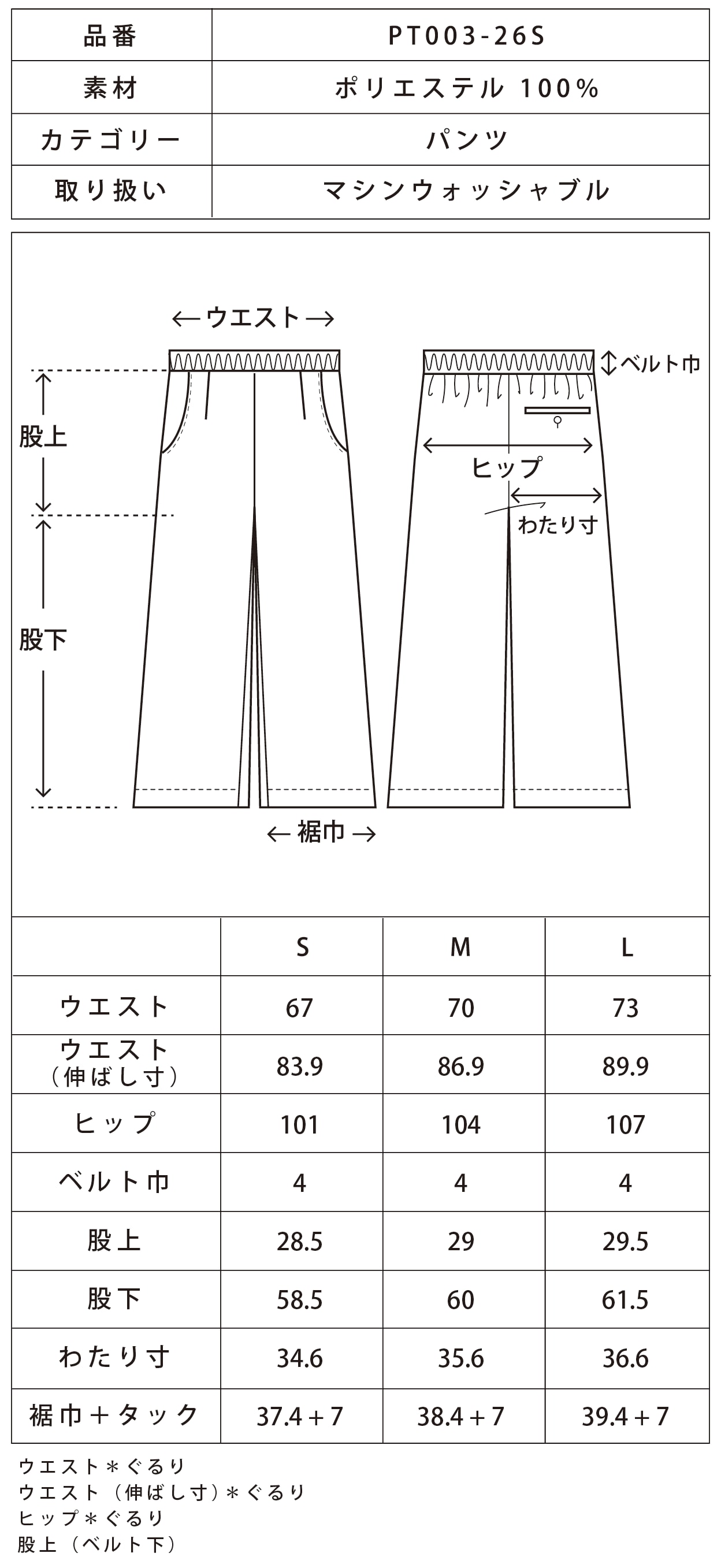 総丈はフラットシューズやスニーカーなど幅広いシューズと合わせやすい長さに設定しています。ウエストを折り込んでの調整もしていただけます。