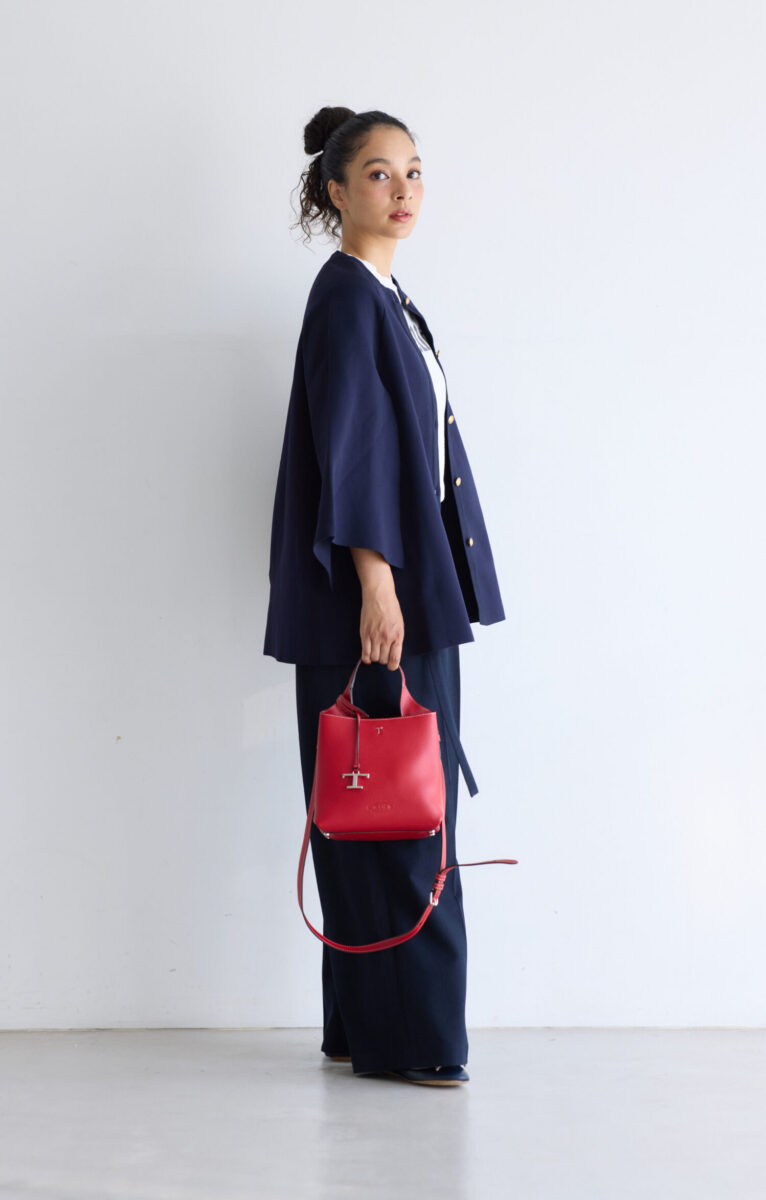 なぜなら、程よいゆとりが腰から脚のラインを自然にカモフラージュしながら、全身をすらりとIラインシルエットに整えてくれるからです。