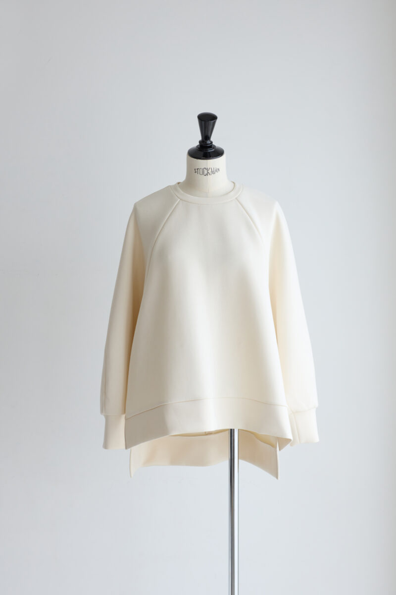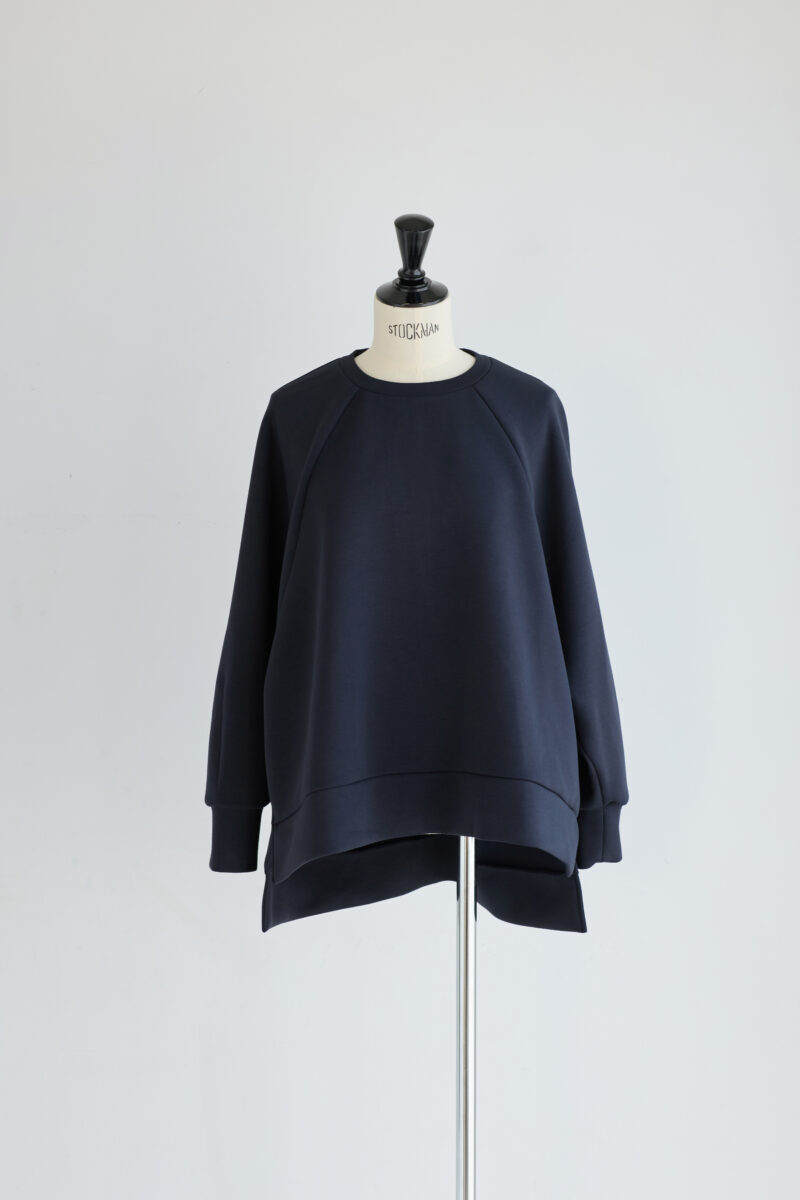 肩のラインに工夫を加えることでトレーナーにありがちな余計なボリュームを抑えました。(これがとても難しく、かなりサンプルを作り直しました)