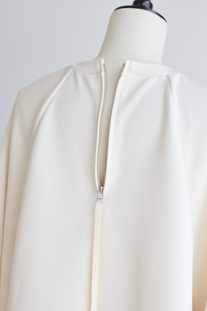 着脱がしやすいようにジッパー付きにしていますので、髪やメイクを気にせずスッと着られます。