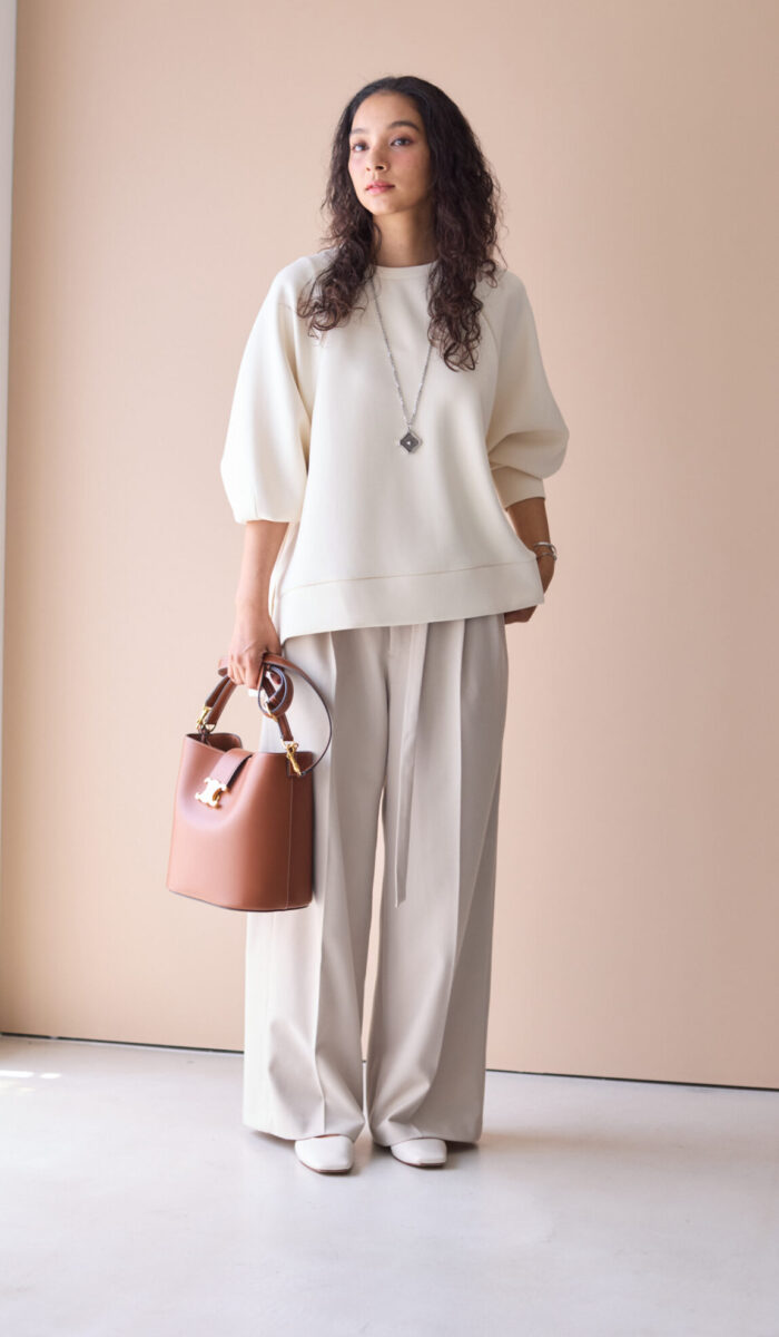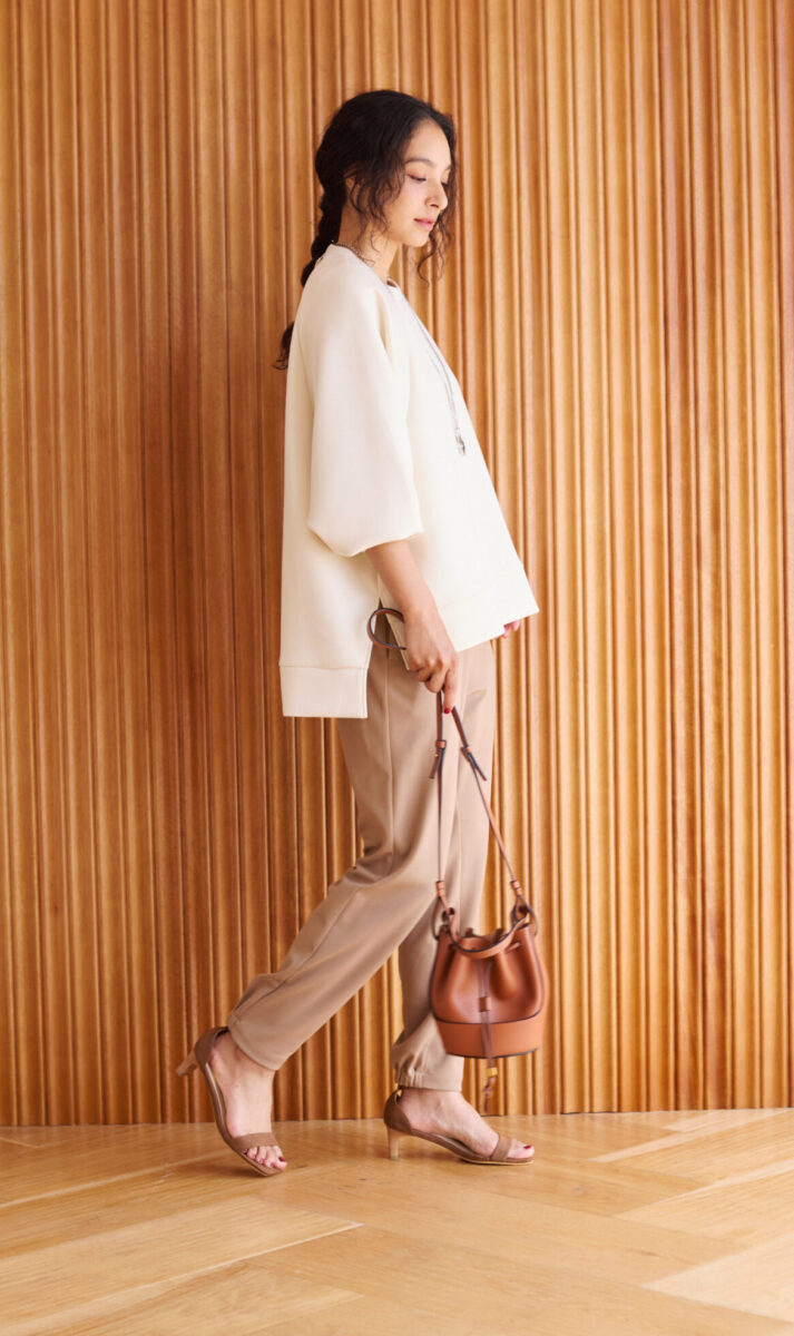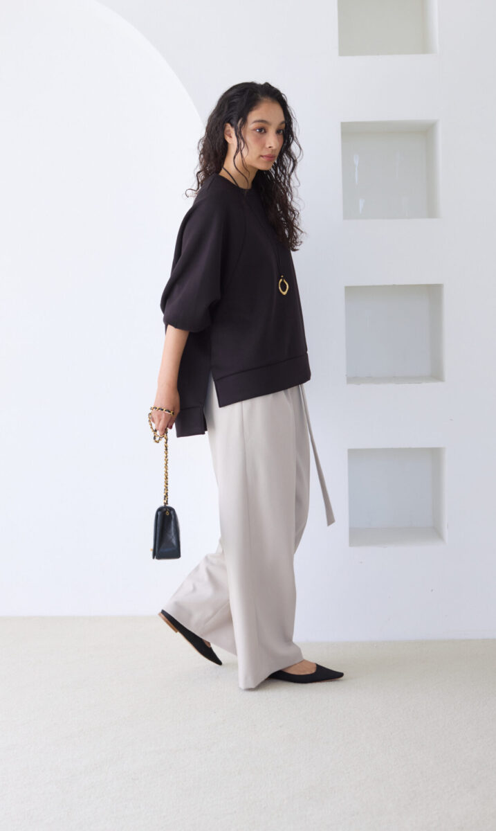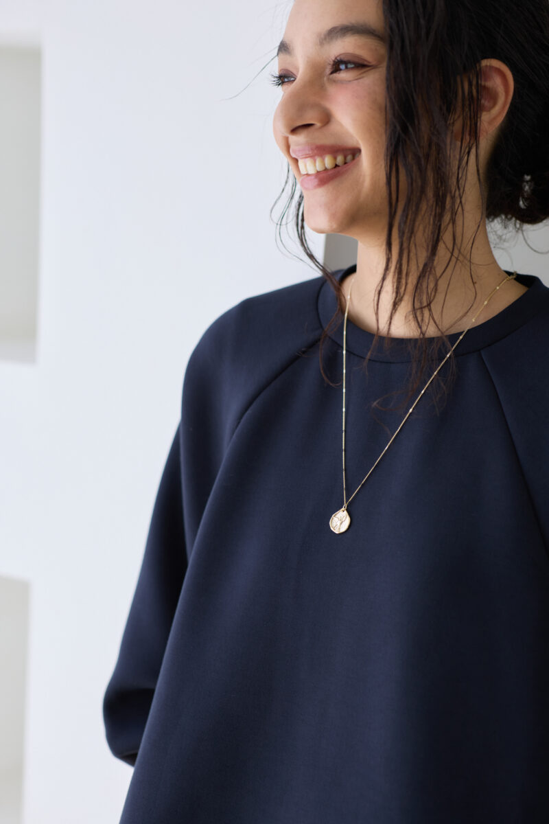 そこで艶のある素材を使い、女性の肌をきれいにみせる大人のスウェットを作りました。