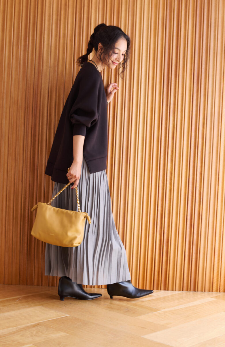 秋冬はこんな風にスカートとブーツに合わせても本当に可愛いです!お持ちの方はぜひ試してみてくださいね。