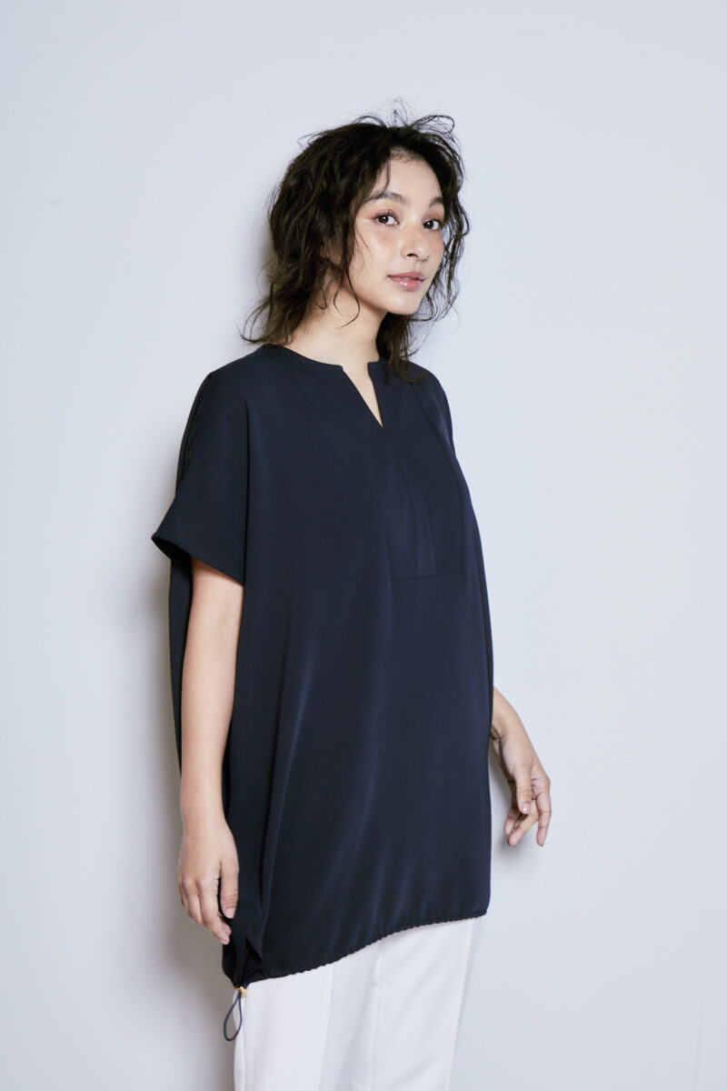 肉感を拾わない落ち感のキレイなブラウスです。